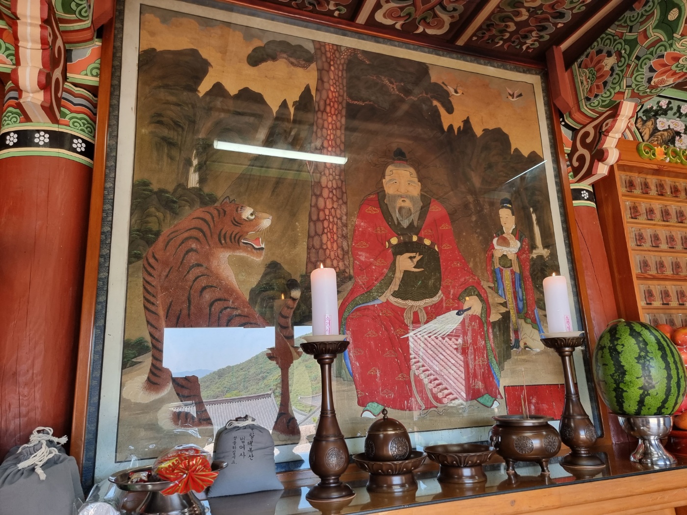 산신은 원래 우리 전통 신앙인데, 이 신앙이 불교와 합쳐져서 사찰에 모시는 것인데, 산신각을 따로 지어서 모시거나