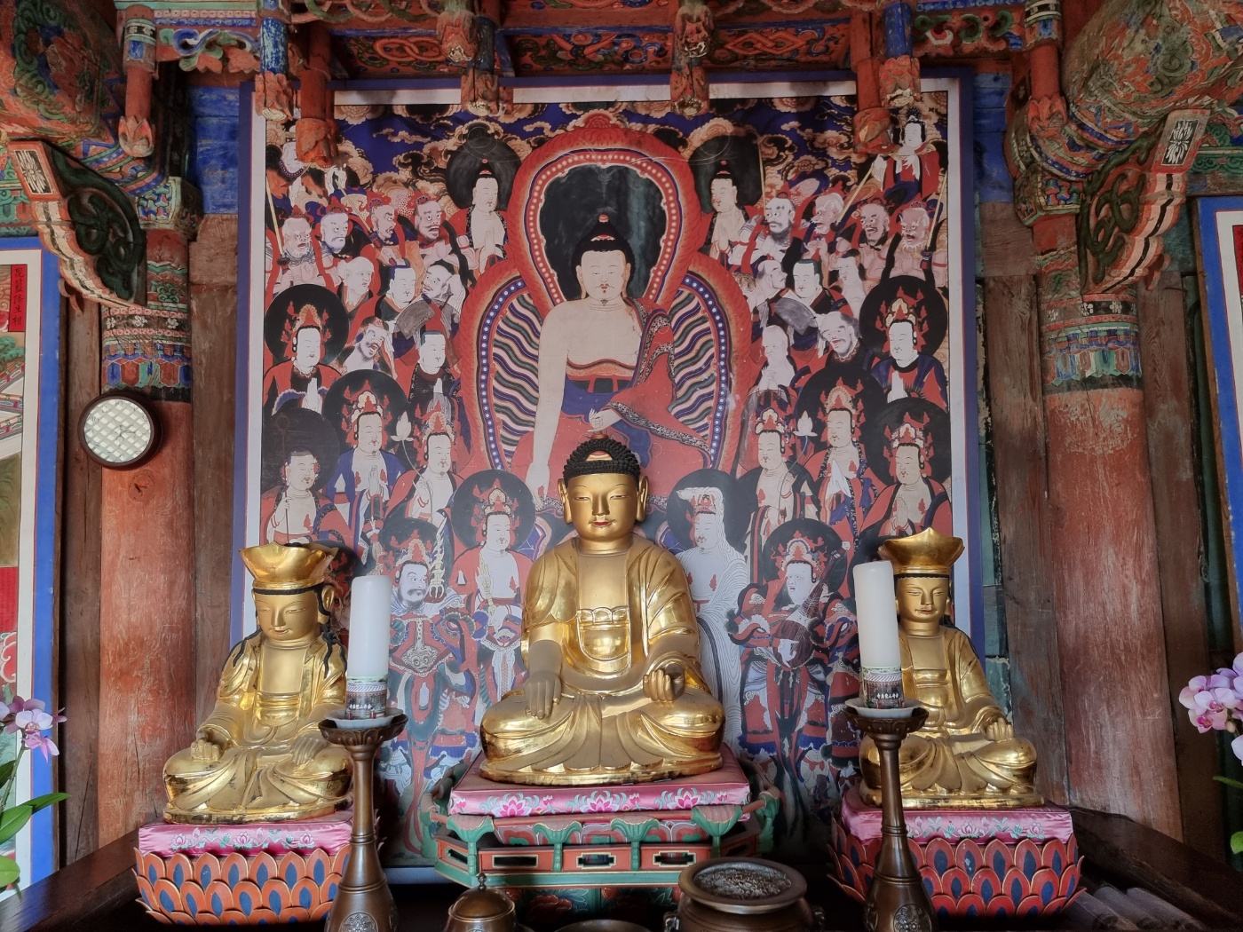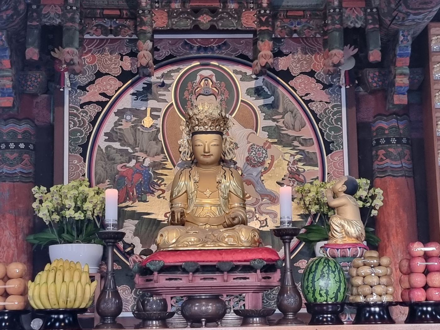 나한전(羅漢殿)은 응진전(應眞殿)이라고 불리는 곳인데, 석가모니 부처를 중심으로 그의 제자들을 모신 건물입니다.
